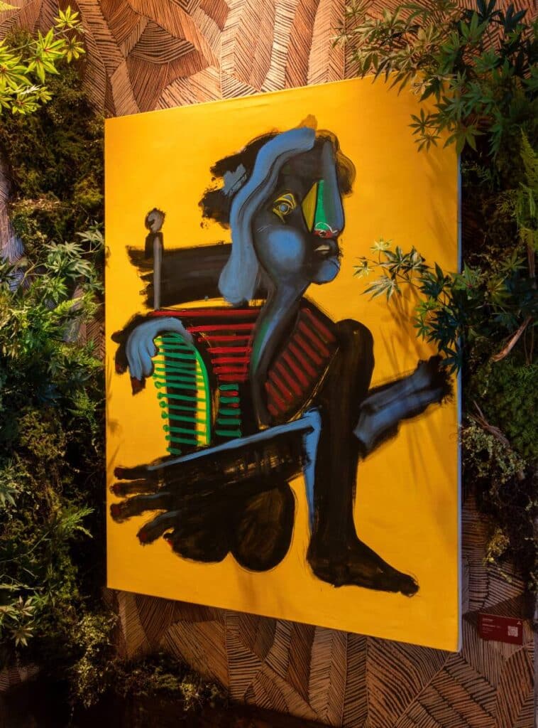 La inauguración de la exposición coincidió con el inicio de la temporada veraniega en la terraza, donde Vilató realizó en directo una pieza de gran formato que, desde entonces, permanece expuesta en el corazón del Pisco Bar hasta el final del ciclo. El acto no solo añadió una capa ritual al evento, sino que también integró el arte de manera orgánica en el entorno gastronómico y cultural de COYA. «No quise limitarme a colgar cuadros, sino conectar con el lugar a través del acto de pintar», explicó Jacob Vilató. Para el artista, Carne y Huesos representa más que una exhibición estática, es un viaje hacia lo tangible y lo ritual, donde el arte se siente tanto como se contempla. Con un lenguaje visual que evoca el cubismo y la figuración expresiva, Vilató transforma cada pieza en un ejercicio de transformación y expansión de significados.