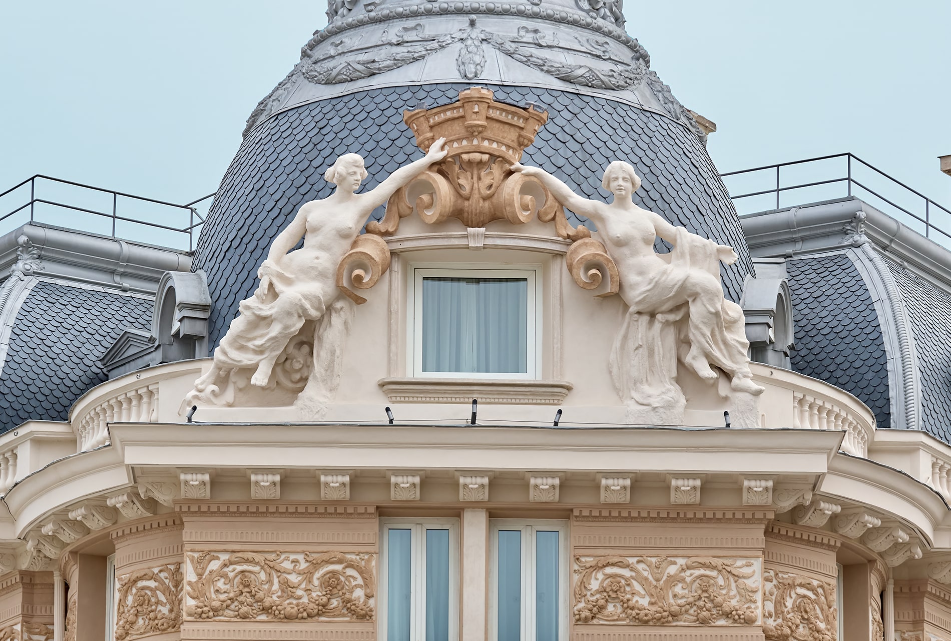 En junio de 2023 parte de este edificio “desapareció” entre andamios que nos privaron de la belleza de su fachada para llevar a cabo una importante labor de restauración y conservación arquitectónica. Pero solo temporalmente. Recientemente el hotel acaba de descubrir el resultado de este proyecto liderado por Ruiz Larrea Arquitectura, que combina ciencia y artesanía para recuperar el diseño original de 1912.