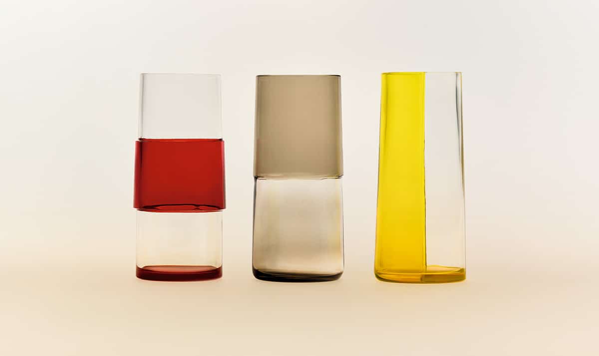 Creado por Studio Hermè, la historia de este jarrón comienza cuando el maestro vidriero corta en frío el vidrio estucado de color para crear rayas o un diseño de damero. Los colores se oscurecen o aclaran según el ángulo desde el que se miren y la alternancia de geometrías superpuestas por el ojo. El trabajo de corte, realizado en grandes superficies de forma estrictamente ortogonal, es infinitamente preciso.